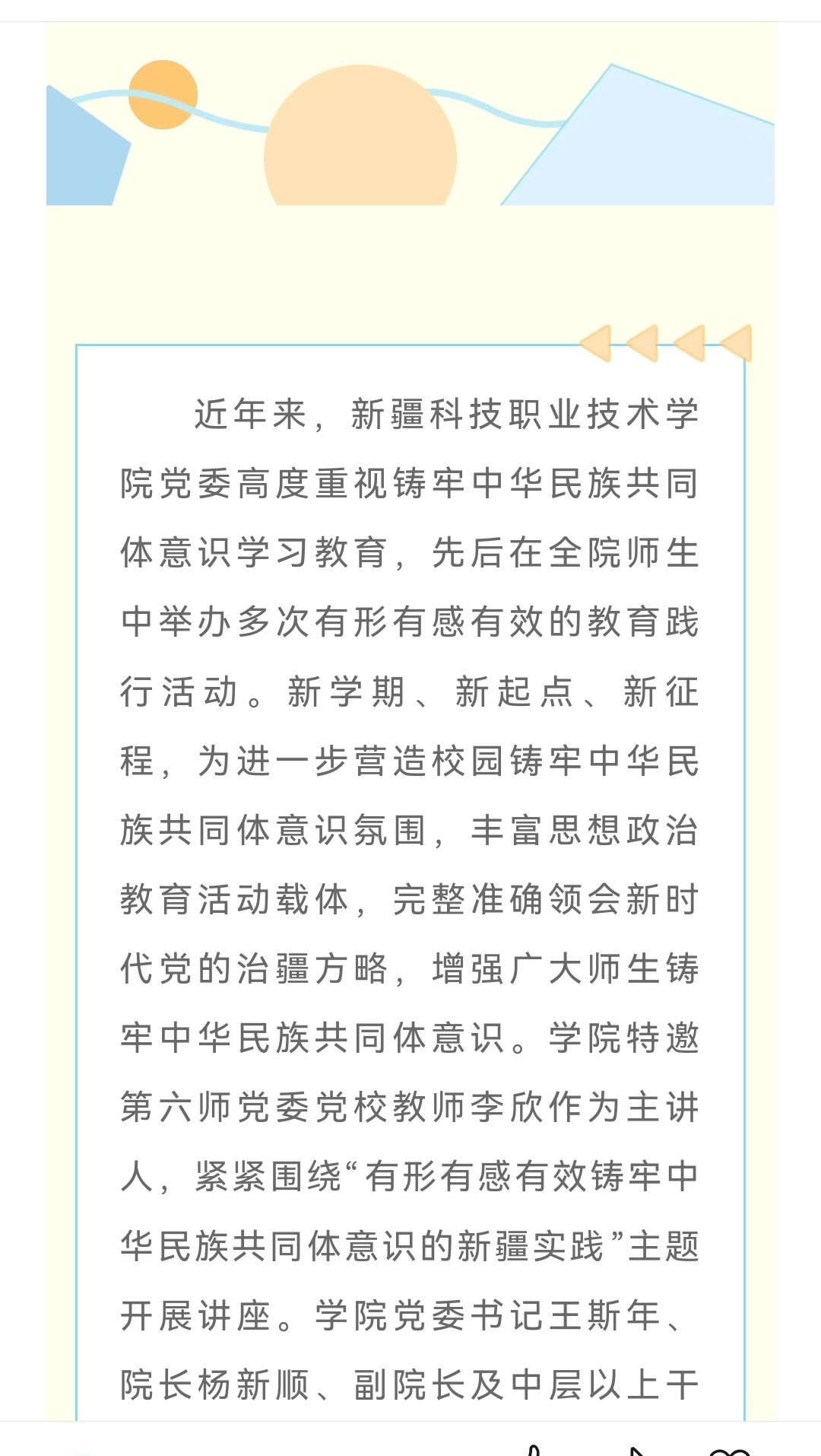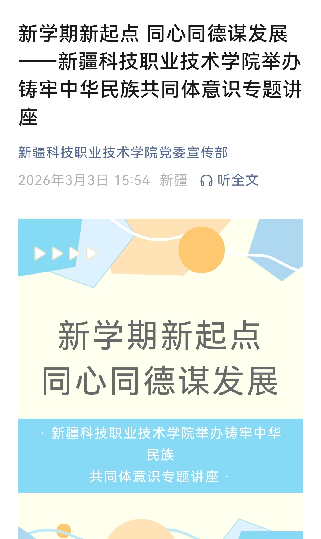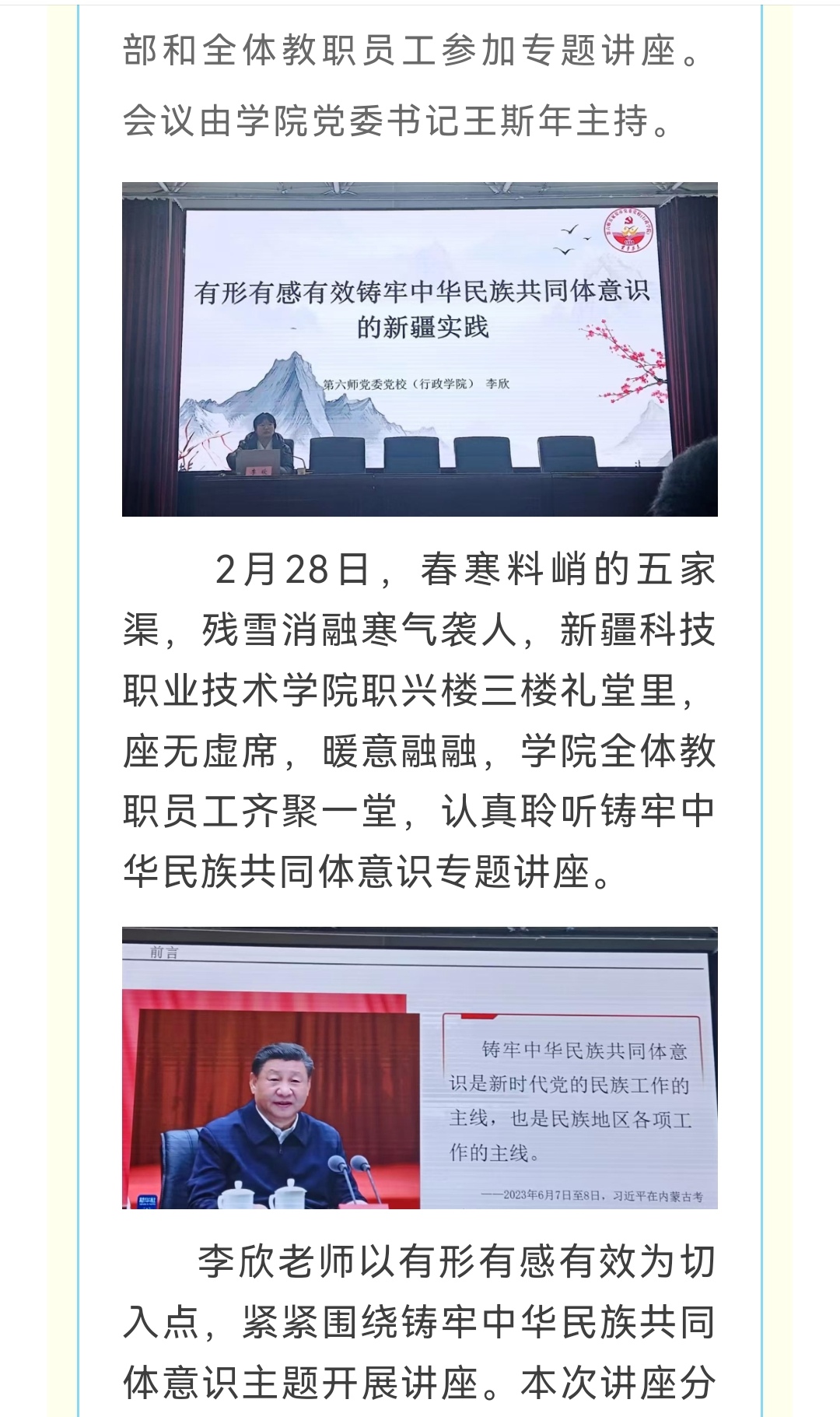 新学期新起点 同心同德谋发展——新疆科技职业技术学院举办铸牢中华民族共同体意识专题讲座