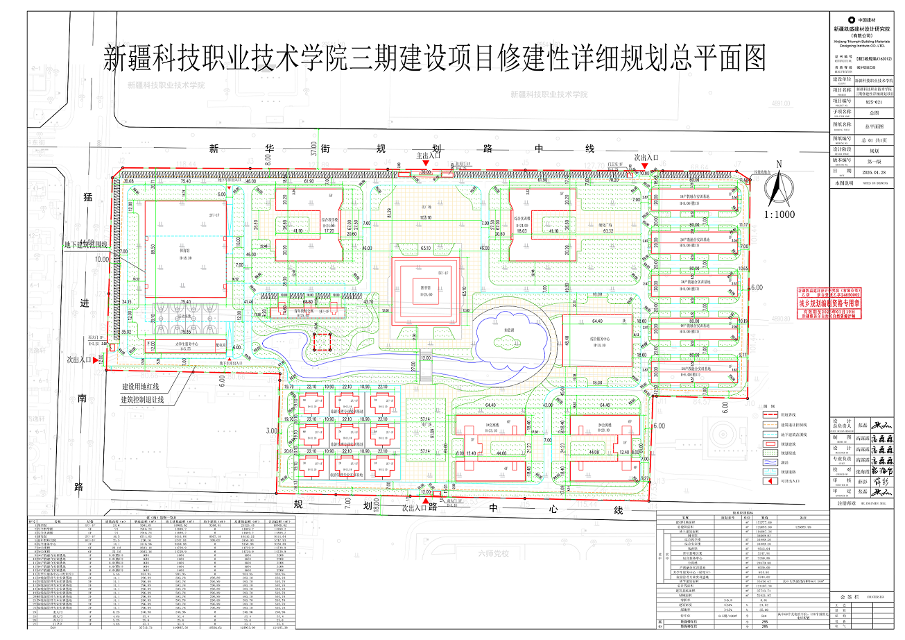 新疆科技学院三期建设项目修建性详细规划总平面图